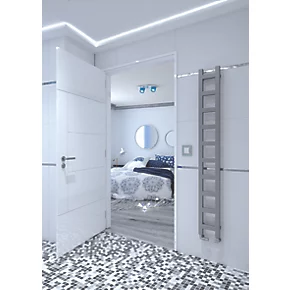 Chunky, square-profile ladder rail. Ideal solution for limited wall space due to its tall, narrow design. Bars are equally spaced all the way down.