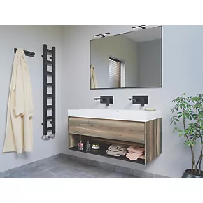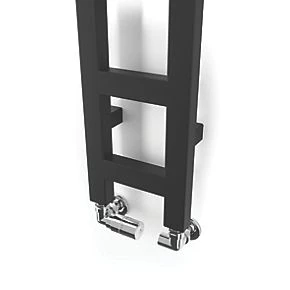 Chunky, square profile heated towel rail. Perfect solution for limited wall space due to its very tall, narrow shape. Equally spaced bars allow for towels to be rolled and inserted into, or hung over, every bar. Can also be fitted as dual fuel, whereby it can run on central heating in winter and as electric in summer (simply add a Terma heating element and the Terma integrated valve with immersion tube). Suggest 3 x Axis corner valves to fit product if pipework extrudes from wall.