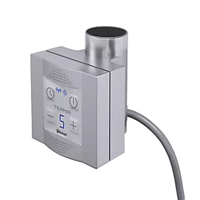 Designed to work in combination with the TS1 element probe to provide a fully functioning heating element (probe sold separately). Control via smartphone or tablet with the Terma BLUE-Line app. Features 7-day timer, 2hr drying function, frost and overheating protection.