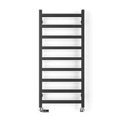 Sturdy-looking towel rail features chunky, oversized 40mm bars, helping to offer increased heat outputs, allowing use as the only heat source in the bathroom. Brackets are located on the rear of the uprights, leaving the full width of the bars free for hanging towels. Can be fitted as dual fuel, running with the use of central heating in the winter and electrically in the summer, if fitted with Terma heating element and integrated valve with immersion tube (both sold separately). Silk, smooth-textured finish.