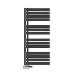 Sturdy-looking towel rail features chunky, oversized 40mm bars, helping to offer increased heat outputs, allowing use as the only heat source in the bathroom. Brackets are located on the rear of the uprights, leaving the full width of the bars free for hanging towels. Can be fitted as dual fuel, running with the use of central heating in the winter and electrically in the summer, if fitted with Terma heating element and integrated valve with immersion tube (both sold separately). Smooth, matt-textured metallic finish. Ideal to use in period-style bathrooms with brass pipes and accessories or a modern bathrooms.
