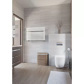 Sturdy-looking towel rail features chunky, oversized 40mm bars, helping to offer increased heat outputs, allowing use as the only heat source in the bathroom. Brackets are located on the rear of the uprights, leaving the full width of the bars free for hanging towels. Can be fitted as dual fuel, running with the use of central heating in the winter and electrically in the summer, if fitted with Terma heating element and integrated valve with immersion tube (both sold separately). Silk, smooth-textured finish.