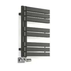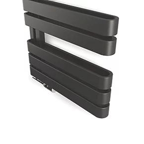 Designed with large flat bars which sweep forward and then bend backwards on themselves to create a towel rail which is only mounted to the wall on one side, leaving the other side open and free for easily hanging towels on. Can be mounted either way up as it has symmerical bars top and bottom. Large surface area for a higher heat output. Can also be fitted as dual fuel. Requires a Terma heating element and the Terma Integrated Valve with Immersion Tube (no T-piece required) to easily install as dual fuel.