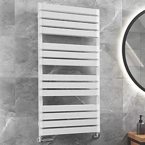 Designed with double-layered bars front and rear, offering high heat outputs and offering option to hang towels on front or rear layer. Front layer of bars curve at either end, while rear layer is completely flat. Stylish construction with neat rectangular uprights to compliment flat rectangular bar shape. Features large surface area in comparison to many standard ladder-type rails, so colour features in the bathroom. Can also be fitted as dual fuel, running on central heating in winter and electric in summer. Requires a Terma heating element and the Terma Integrated Valve with Immersion Tube (no T-piece required with this valve) to easily install as dual fuel (sold separately).