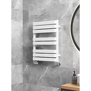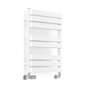 Designed with double-layered bars front and rear, offering high heat outputs and offering option to hang towels on front or rear layer. Front layer of bars curve at either end, while rear layer is completely flat. Stylish construction with neat rectangular uprights to compliment flat rectangular bar shape. Features large surface area in comparison to many standard ladder-type rails, so colour features in the bathroom. Can also be fitted as dual fuel, running on central heating in winter and electric in summer. Requires a Terma heating element and the Terma Integrated Valve with Immersion Tube (no T-piece required with this valve) to easily install as dual fuel (sold separately).