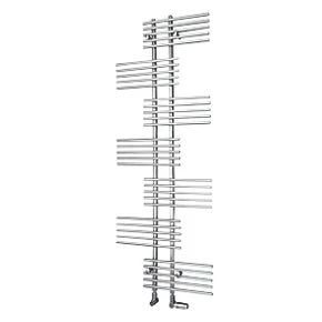 Striking and distinctive vertical radiators with an attractively staggered parallel rail design. These eye-catching, chrome radiators are suitable for use with hot water central heating systems and will complement any contemporary interior.